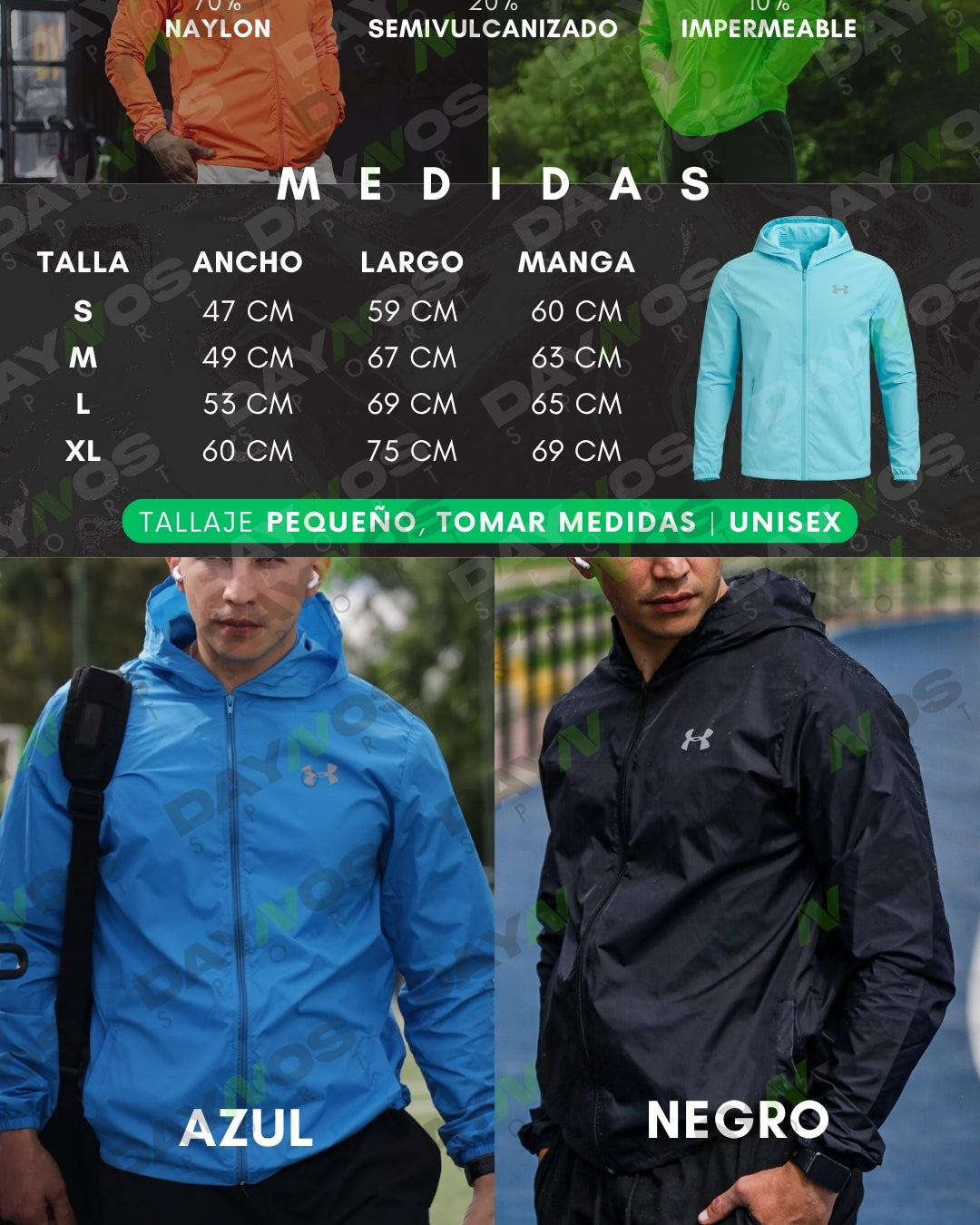 Siempre recomendamos tener en cuenta la tabla de medidas de las chaquetas rompevientos ya que su horma es Slim fit. En caso que necesites un cambio puedes hacerlo mediante nuestra línea de WhatsApp, Aura atenderá tus solicitudes y requerimientos.